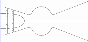 我所設想的飛機發動機如圖所示,與現有的飛機發動機相比,只有進氣的壓縮蝸輪部分,沒有排氣的蝸輪部分,后段高溫部分只是一個空殼子。進氣壓縮蝸輪由另一臺發動機帶動壓縮空氣。蝸輪錐頭可以向氣流方向運動,堵住進氣口,成為箭發動機。一臺發動機有多種功能,這樣設計會有如下優點: