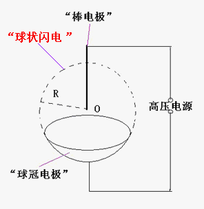 我們認(rèn)為:“棒電極”在球心O對“球冠電極”放電,可以產(chǎn)生“球狀閃電”。 [3][4]